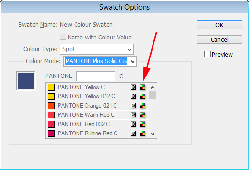 Najverjetneje je problem pri definiciji barve. Ko v programih izberete neprocesno (spot) barvo iz knjižnice, morate biti pozorni, v kakšnem barvnem prostoru je izbrana knjižnica. V Adobe programih to opozarja ikona na koncu vrstice z imenom. Izberite knjižnico, kjer so barve definirane v Lab barvnem prostoru.