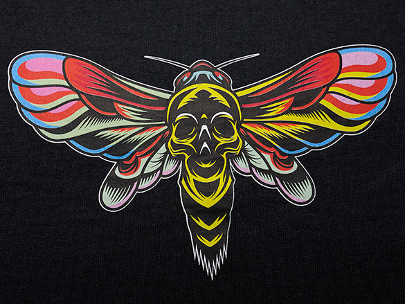 | DTG grafika - pogled z zadnje strani. Vidijo se luknjice v tkanini, ki prepuščajo zrak.